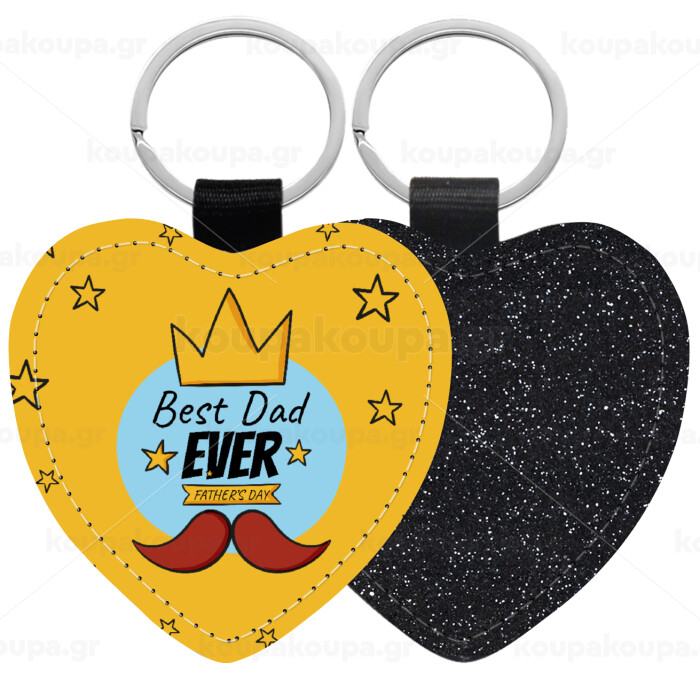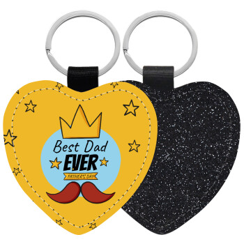 King, Best dad ever, Μπρελόκ PU δερμάτινο glitter καρδιά ΜΑΥΡΟ