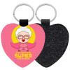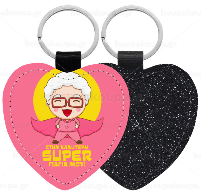 To my best Super Grandma!, Μπρελόκ PU δερμάτινο glitter καρδιά ΜΑΥΡΟ