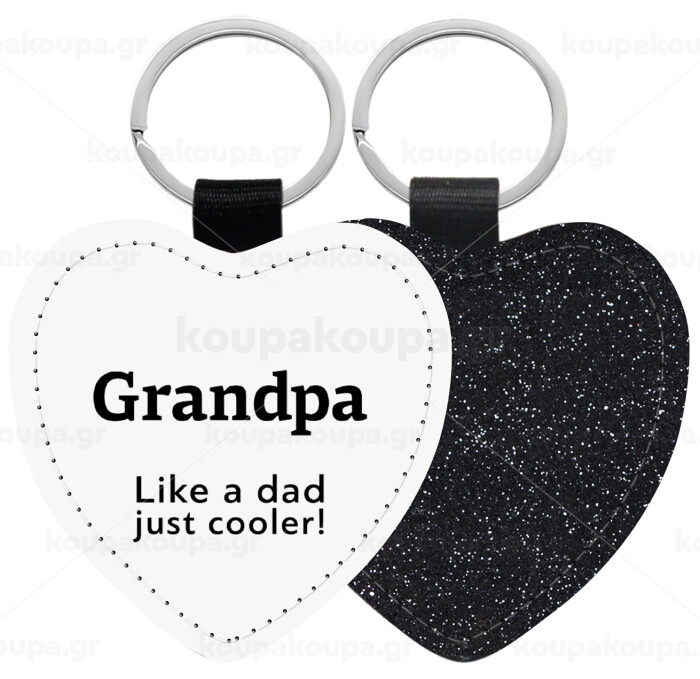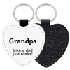 Grandpa, like a dad, just cooler, Μπρελόκ PU δερμάτινο glitter καρδιά ΜΑΥΡΟ