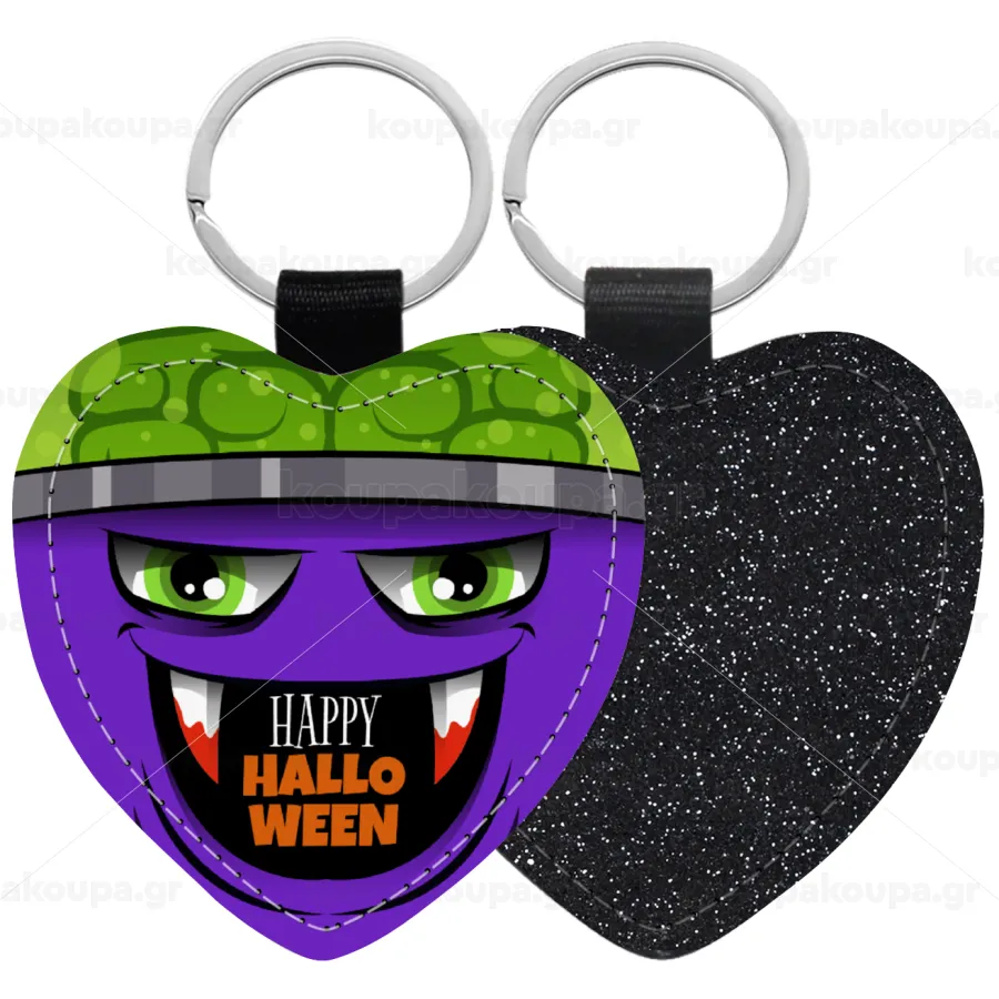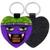 Halloween trick or treat Monster, Μπρελόκ PU δερμάτινο glitter καρδιά ΜΑΥΡΟ