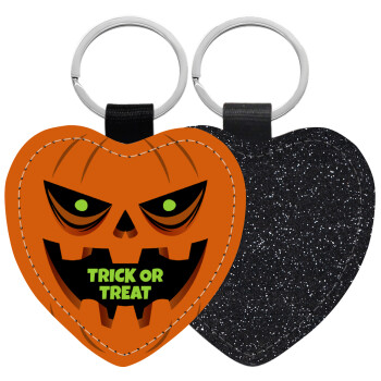 Halloween trick or treat Pumpkins, Μπρελόκ PU δερμάτινο glitter καρδιά ΜΑΥΡΟ