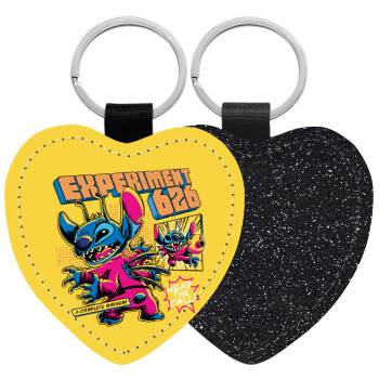 Stitch Experiment 626, Μπρελόκ PU δερμάτινο glitter καρδιά ΜΑΥΡΟ