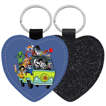 Stitch Halloween scooby car, Μπρελόκ PU δερμάτινο glitter καρδιά ΜΑΥΡΟ