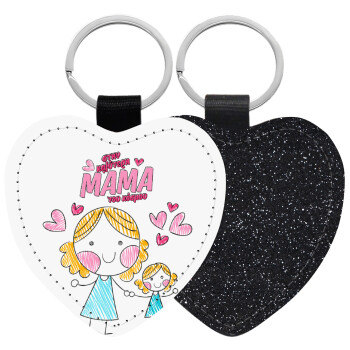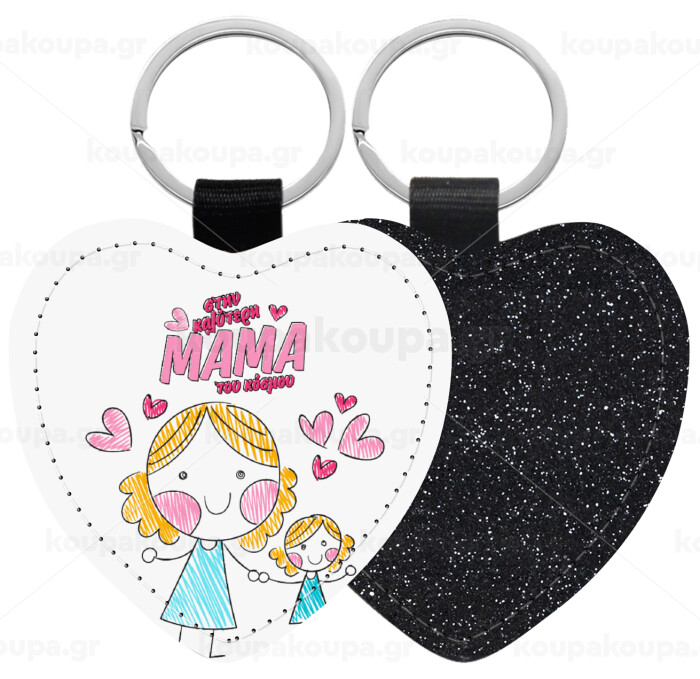 Στην καλύτερη μαμά του κόσμου, comic, Μπρελόκ PU δερμάτινο glitter καρδιά ΜΑΥΡΟ