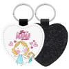 Leatherette keychain with glitter on one side and high resistance leatherette on the other. Safety ring for the keys.