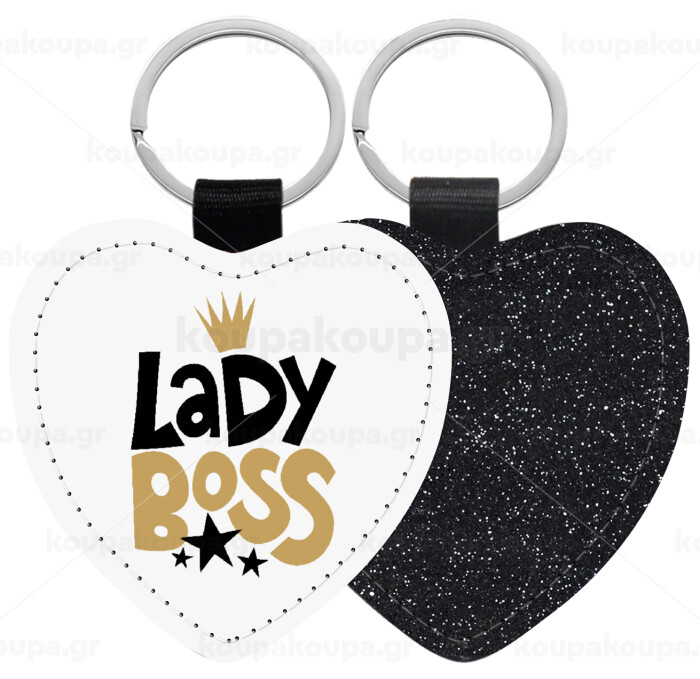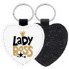 Lady Boss, Μπρελόκ PU δερμάτινο glitter καρδιά ΜΑΥΡΟ