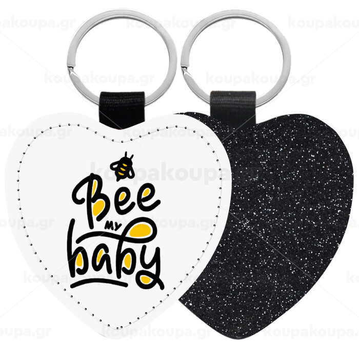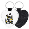 Bee my BABY!!!, Μπρελόκ PU δερμάτινο glitter καρδιά ΜΑΥΡΟ