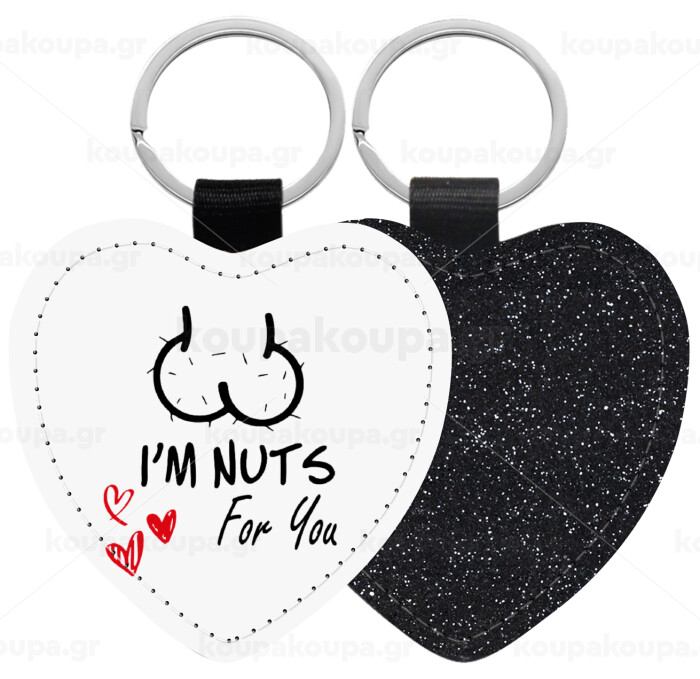 I'm Nuts for you, Μπρελόκ PU δερμάτινο glitter καρδιά ΜΑΥΡΟ
