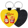 Ketchup To My Fries, Μπρελόκ PU δερμάτινο glitter καρδιά ΜΑΥΡΟ