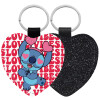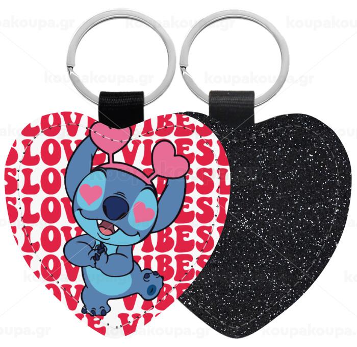 Lilo & Stitch Love vibes, Μπρελόκ PU δερμάτινο glitter καρδιά ΜΑΥΡΟ