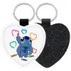 Lilo & Stitch painting, Μπρελόκ PU δερμάτινο glitter καρδιά ΜΑΥΡΟ