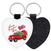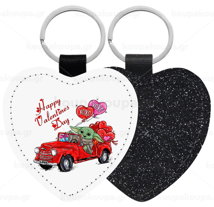 Yoda, happy valentines day (xoxo), Μπρελόκ PU δερμάτινο glitter καρδιά ΜΑΥΡΟ
