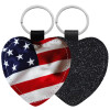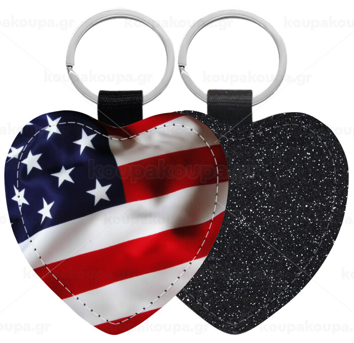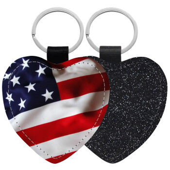 USA Flag, Μπρελόκ PU δερμάτινο glitter καρδιά ΜΑΥΡΟ