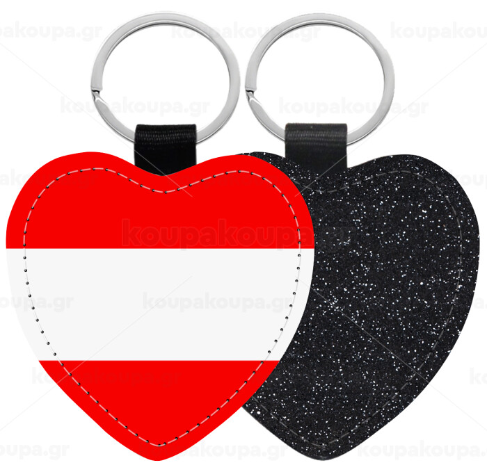 Austria flag, Μπρελόκ PU δερμάτινο glitter καρδιά ΜΑΥΡΟ