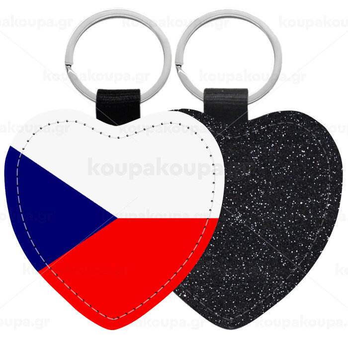 Czechia flag, Μπρελόκ PU δερμάτινο glitter καρδιά ΜΑΥΡΟ