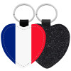 France flag, Μπρελόκ PU δερμάτινο glitter καρδιά ΜΑΥΡΟ