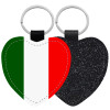Italy flag, Μπρελόκ PU δερμάτινο glitter καρδιά ΜΑΥΡΟ