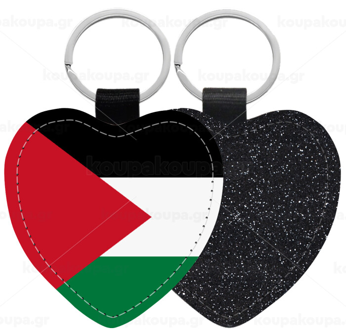 Palestine Flag, Μπρελόκ PU δερμάτινο glitter καρδιά ΜΑΥΡΟ