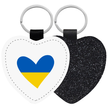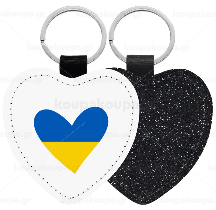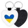 UKRAINE heart, Μπρελόκ PU δερμάτινο glitter καρδιά ΜΑΥΡΟ