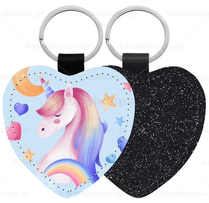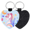 Cute unicorn, Μπρελόκ PU δερμάτινο glitter καρδιά ΜΑΥΡΟ