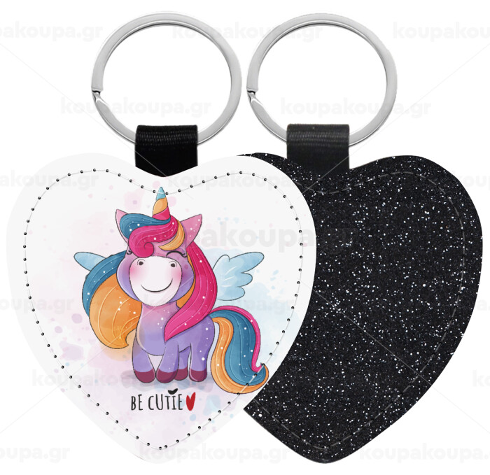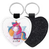 Pink unicorn, Μπρελόκ PU δερμάτινο glitter καρδιά ΜΑΥΡΟ
