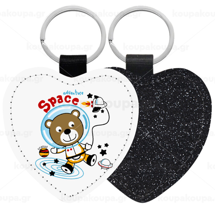 Kids Space, Μπρελόκ PU δερμάτινο glitter καρδιά ΜΑΥΡΟ