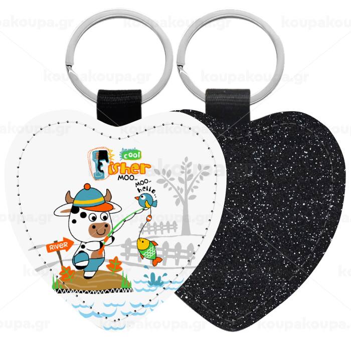 Kids Fisherman, Μπρελόκ PU δερμάτινο glitter καρδιά ΜΑΥΡΟ