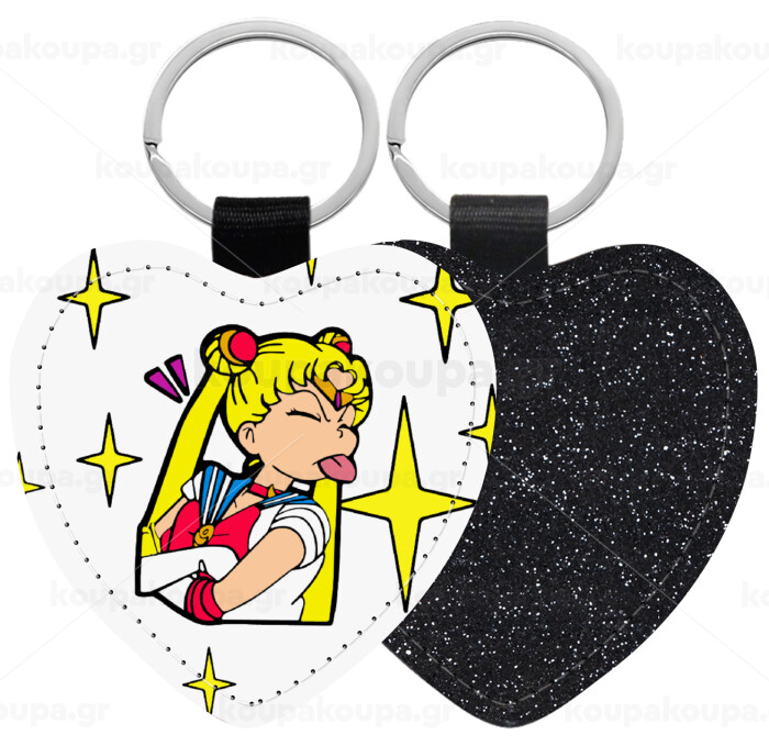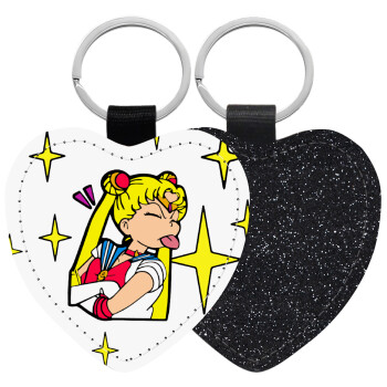 Sailor Moon, Μπρελόκ PU δερμάτινο glitter καρδιά ΜΑΥΡΟ