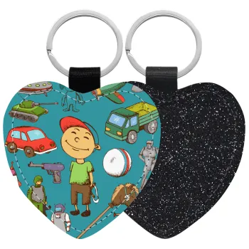 Toys Boy, Μπρελόκ PU δερμάτινο glitter καρδιά ΜΑΥΡΟ