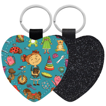 Toys Girl, Μπρελόκ PU δερμάτινο glitter καρδιά ΜΑΥΡΟ