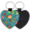 Leatherette keychain with glitter on one side and high resistance leatherette on the other. Safety ring for the keys.