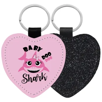 Baby Shark (girl), Μπρελόκ PU δερμάτινο glitter καρδιά ΜΑΥΡΟ
