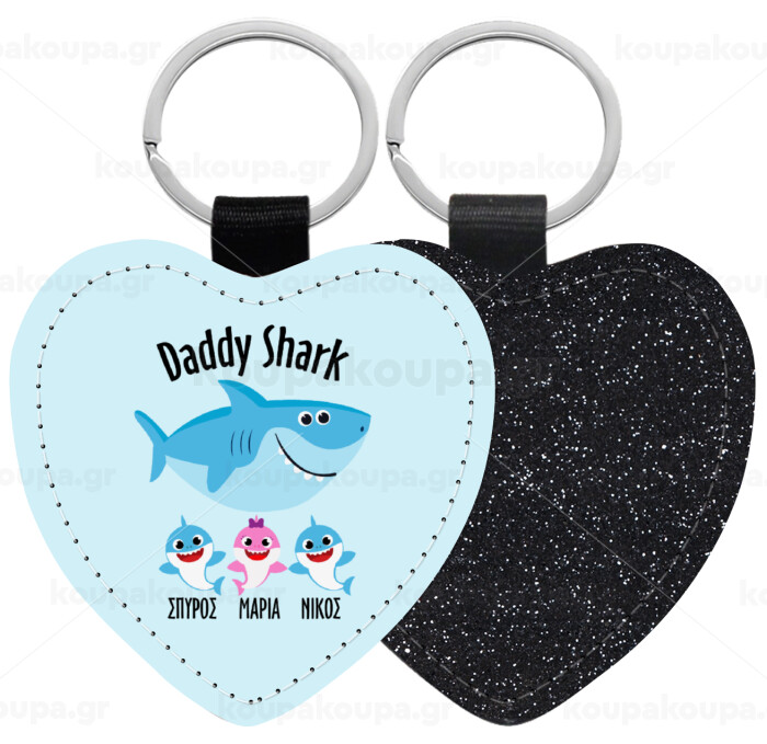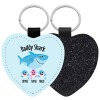 Daddy Shark (με ονόματα παιδικά), Μπρελόκ PU δερμάτινο glitter καρδιά ΜΑΥΡΟ