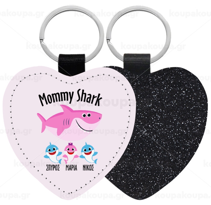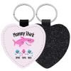 Mommy Shark (με ονόματα παιδικά), Μπρελόκ PU δερμάτινο glitter καρδιά ΜΑΥΡΟ