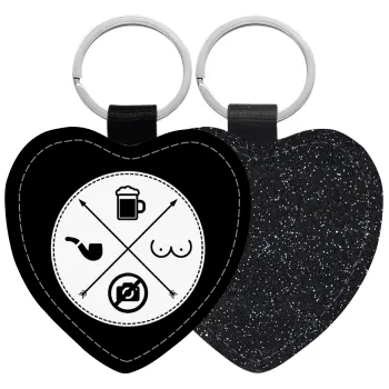 The Bachelor Rules, Μπρελόκ PU δερμάτινο glitter καρδιά ΜΑΥΡΟ