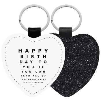 EYE tester happy birthday., Μπρελόκ PU δερμάτινο glitter καρδιά ΜΑΥΡΟ