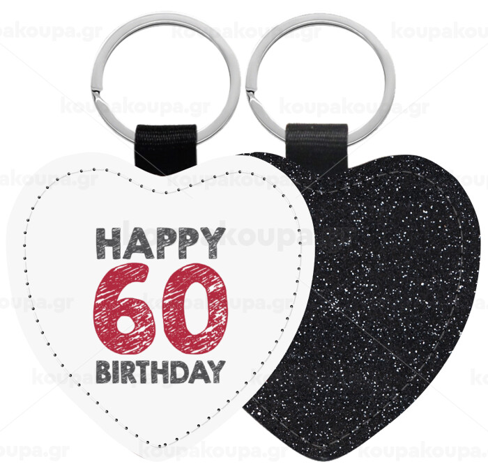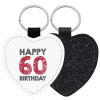 Happy 60 birthday!!!, Μπρελόκ PU δερμάτινο glitter καρδιά ΜΑΥΡΟ