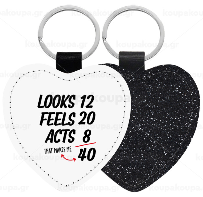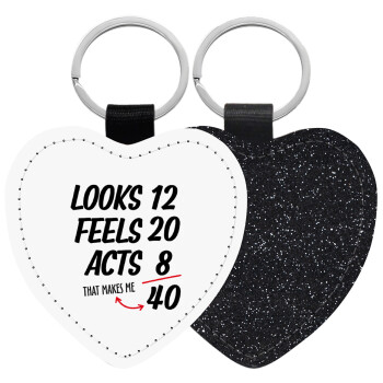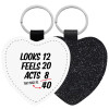 Looks, feels, acts LIKE your AGE, Μπρελόκ PU δερμάτινο glitter καρδιά ΜΑΥΡΟ