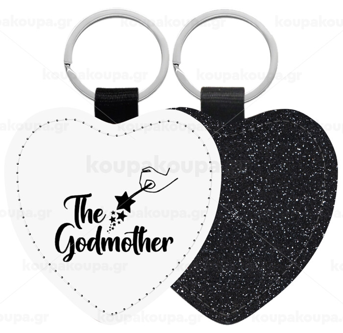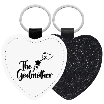 Fairy God Mother, Μπρελόκ PU δερμάτινο glitter καρδιά ΜΑΥΡΟ
