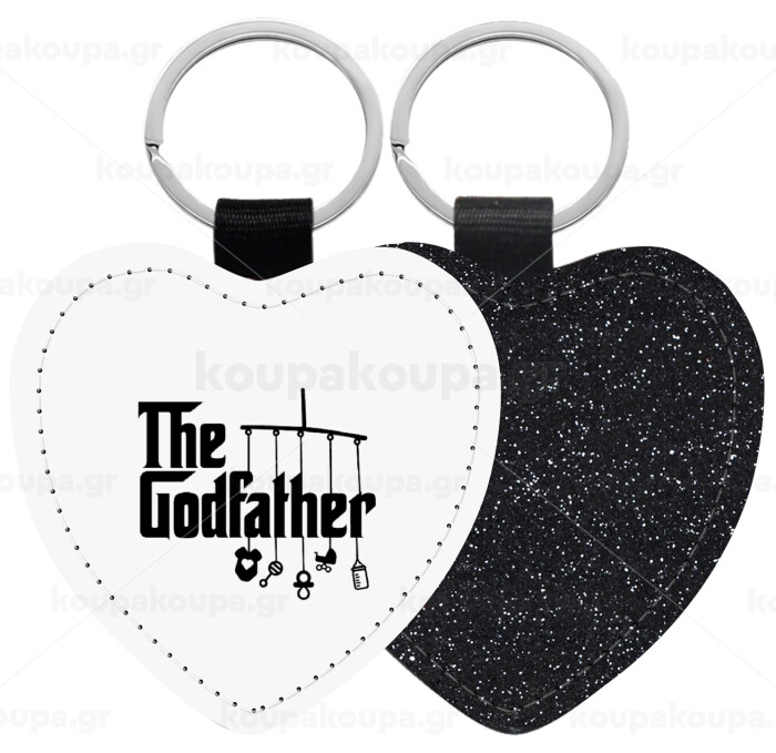 The Godfather baby, Μπρελόκ PU δερμάτινο glitter καρδιά ΜΑΥΡΟ