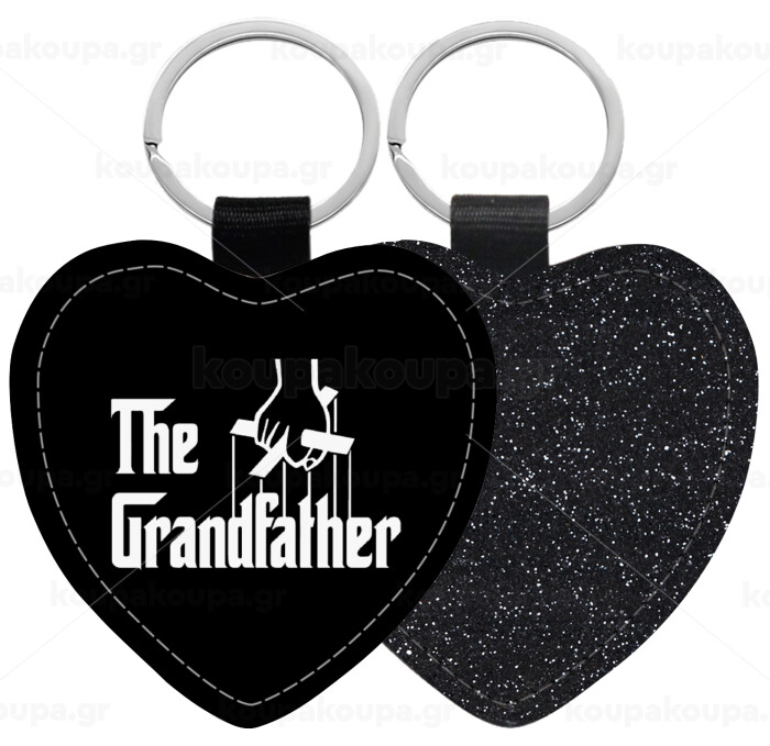The Grandfather, Μπρελόκ PU δερμάτινο glitter καρδιά ΜΑΥΡΟ