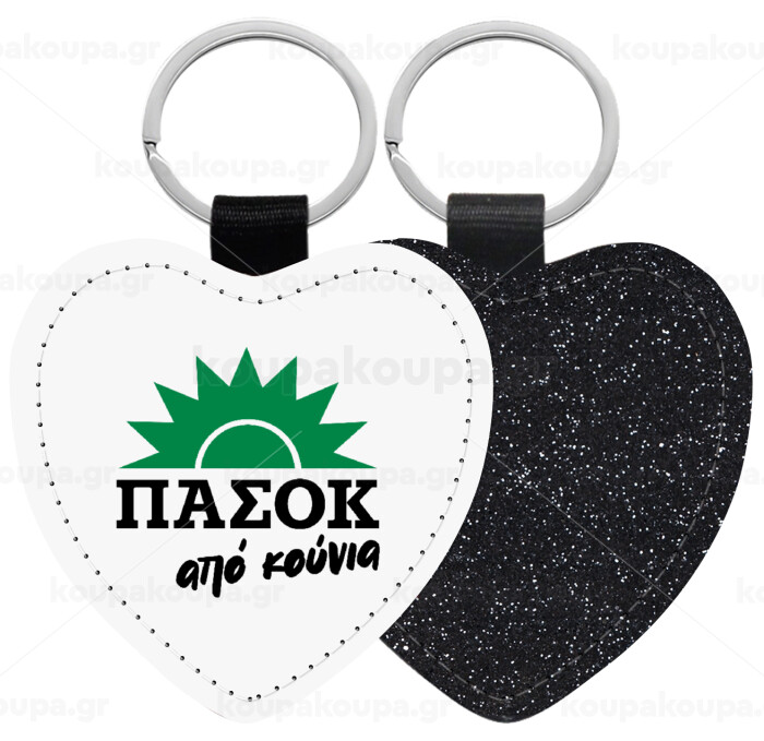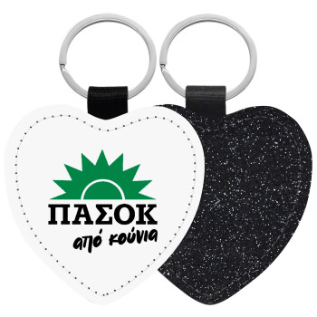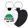 ΠΑΣΟΚ από κούνια, Μπρελόκ PU δερμάτινο glitter καρδιά ΜΑΥΡΟ