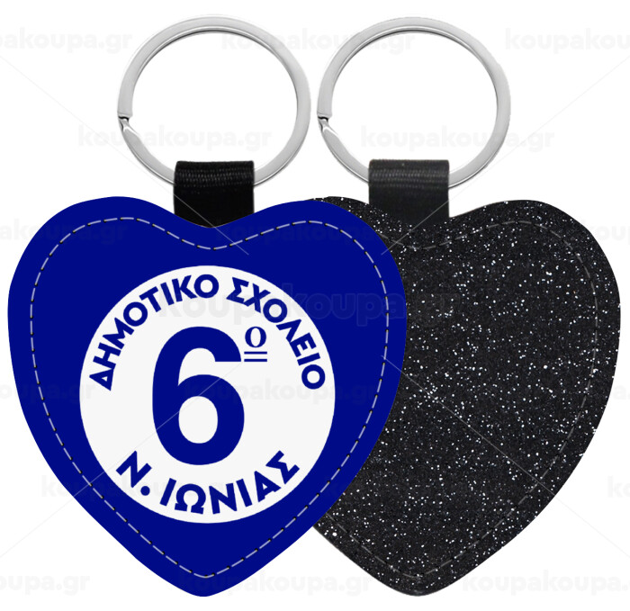 Σχολικό σήμα κλασικό μπλε, Μπρελόκ PU δερμάτινο glitter καρδιά ΜΑΥΡΟ