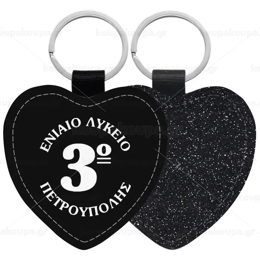 Σχολικό σήμα μαύρο, Μπρελόκ PU δερμάτινο glitter καρδιά ΜΑΥΡΟ