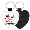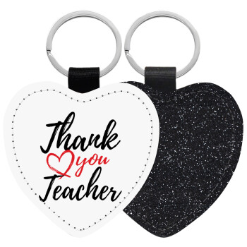 Thank you teacher, Μπρελόκ PU δερμάτινο glitter καρδιά ΜΑΥΡΟ