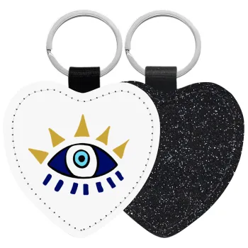 blue evil eye, Μπρελόκ PU δερμάτινο glitter καρδιά ΜΑΥΡΟ