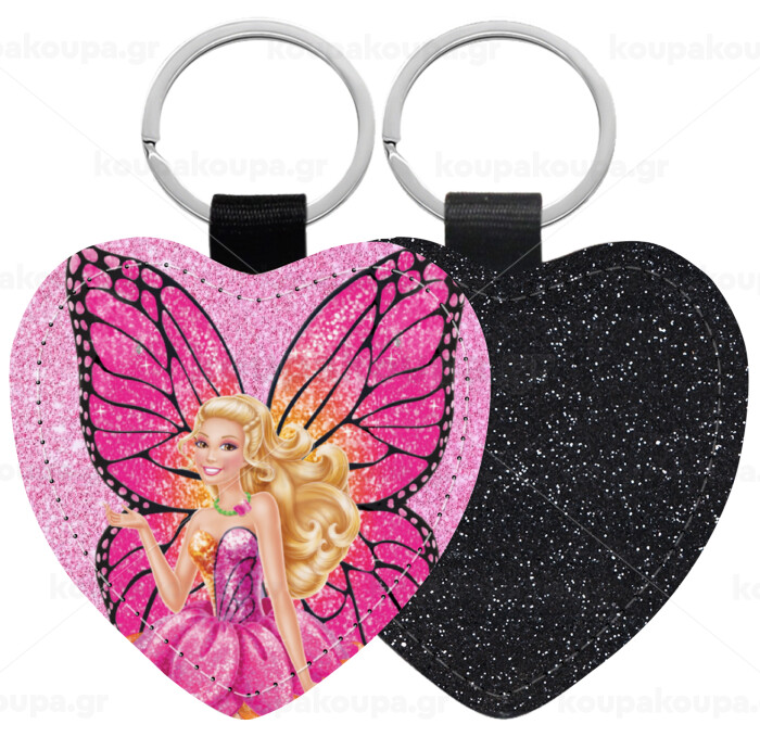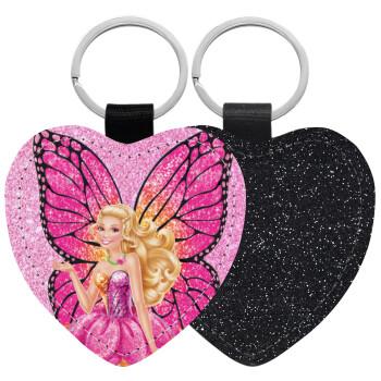 A fairy Barbie, Μπρελόκ PU δερμάτινο glitter καρδιά ΜΑΥΡΟ