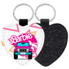 Barbie car, Μπρελόκ PU δερμάτινο glitter καρδιά ΜΑΥΡΟ