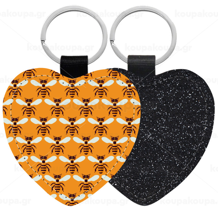 Bee, Μπρελόκ PU δερμάτινο glitter καρδιά ΜΑΥΡΟ