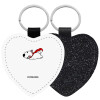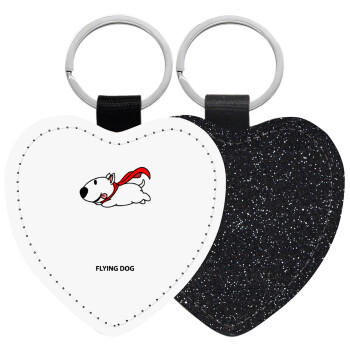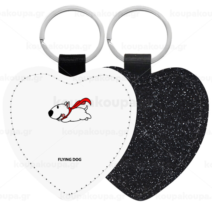 Flying DOG, Μπρελόκ PU δερμάτινο glitter καρδιά ΜΑΥΡΟ